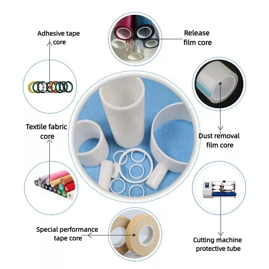 3-inch 76mm ID PVC core tube, with their corrosion resistance, impact resistance, and dimensional stability, are widely used in the electronics and electrical industries for the winding and storage of films and tapes, ensuring a smooth product surface. In the automotive industry, they are used for winding interior materials and soundproofing materials; in packaging and printing, they are used for winding various papers and labels; they are also suitable for material winding scenarios in industries such as chemicals and textiles that require high pipe strength and environmental resistance. In these industries, many still insist on using paper tubes as core winding tubes, but PVC core tubes offer significant advantages: they have high compressive strength and chemical corrosion resistance, providing better protection for wound products; Smooth inner walls minimize fluid resistance and reduce surface damage to products; lightweight design facilitates handling and installation, lowering labor intensity and transportation costs; hygienic and eco-friendly with no secondary pollution; excellent dimensional stability prevents deformation, ensuring product precision; and strong customizability meets diverse requirements. Traditional paper cores fall short in these aspects.